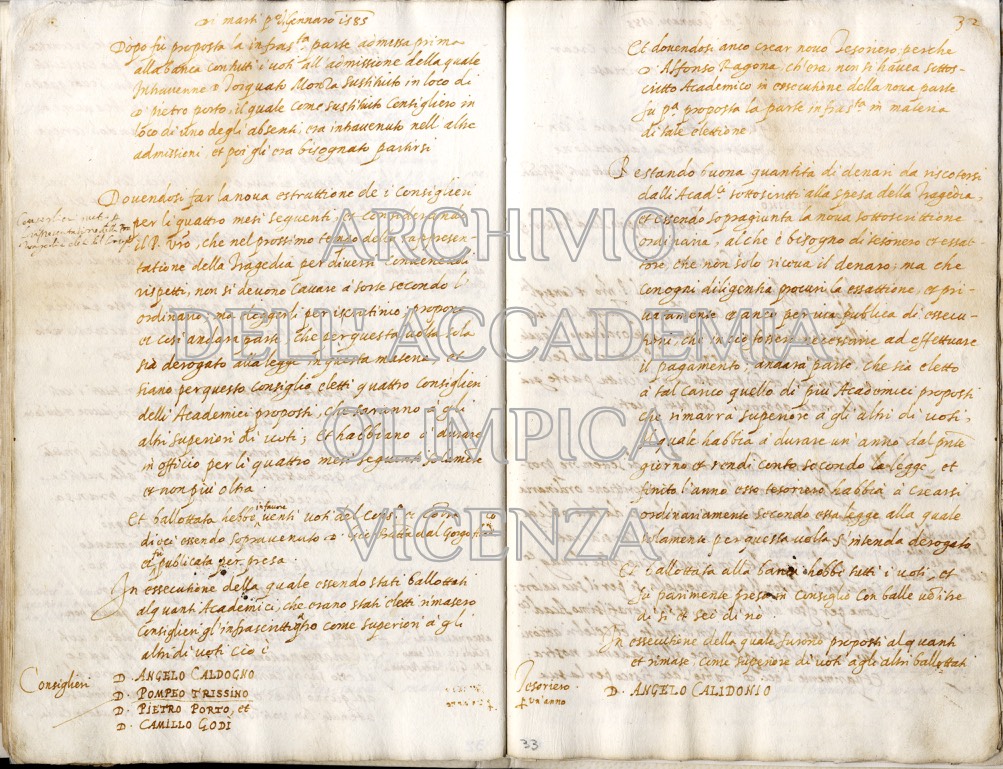 Archivio Accademia Olimpica busta 1 fascicolo 5 carte 32v-33r