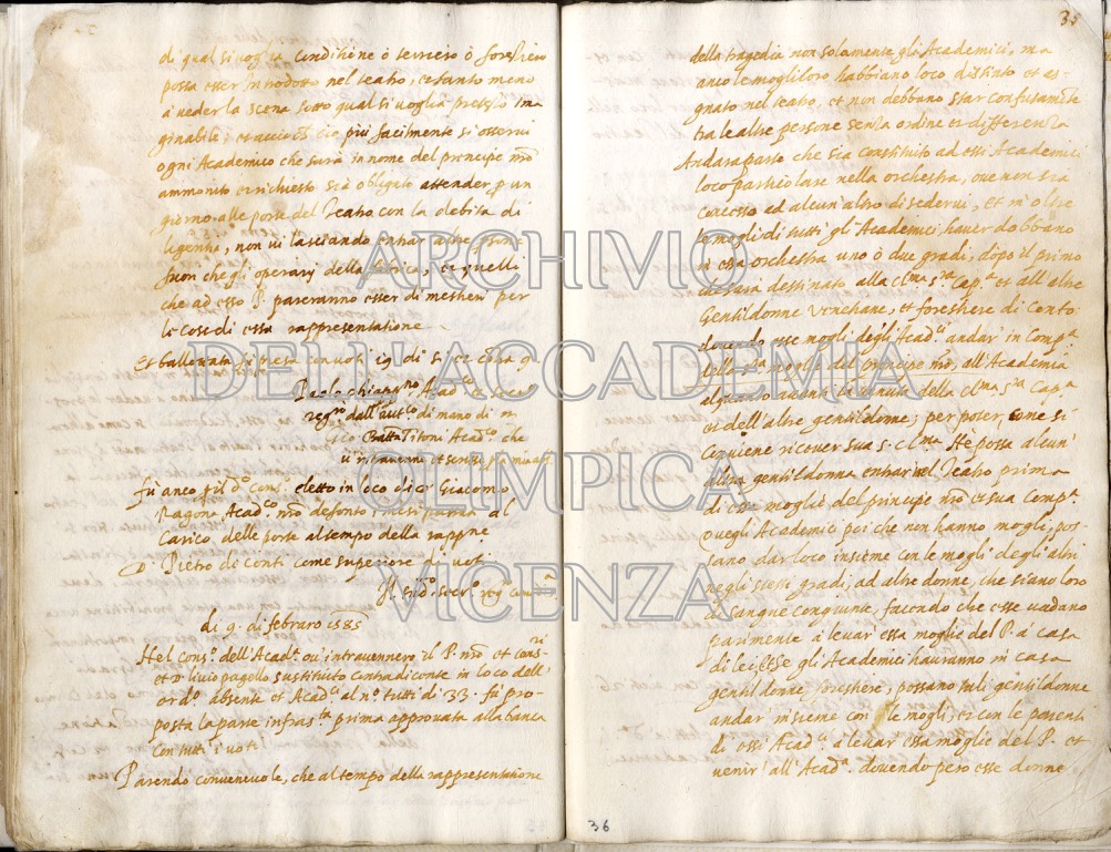 Archivio Accademia Olimpica busta 1 fascicolo 5 carte 35v-36r