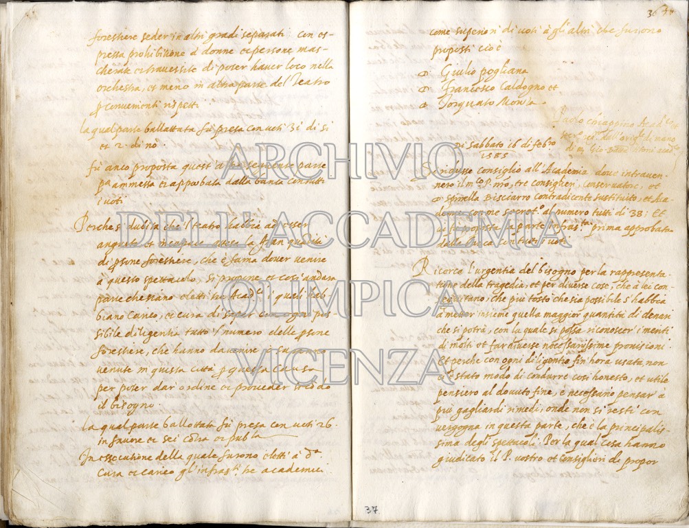 Archivio Accademia Olimpica busta 1 fascicolo 5 carte 36v-37r