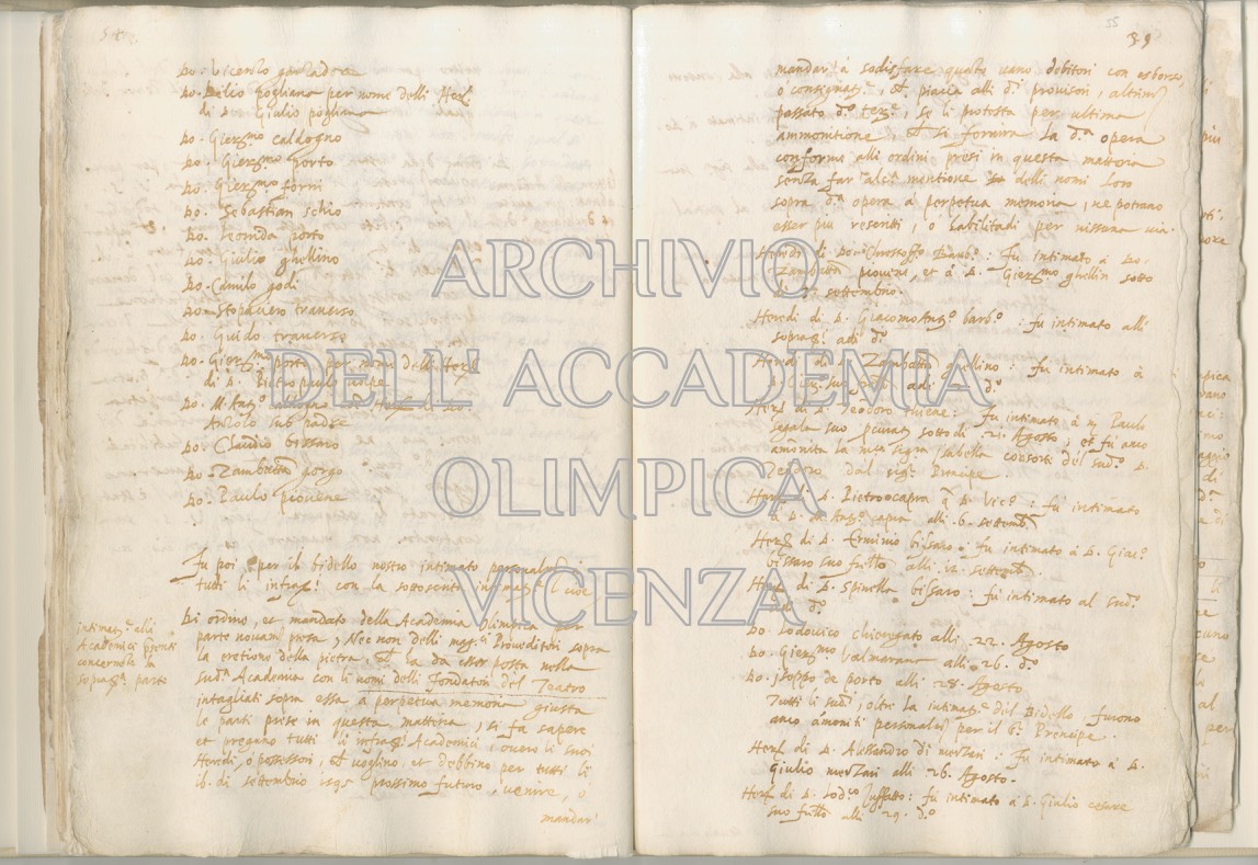 Archivio Accademia Olimpica busta 1 fascicolo 6 pagine 54-55